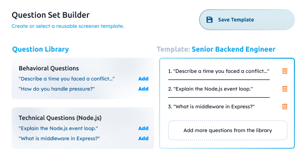 Absolutely. Our platform allows you to build fully customizable question sets from scratch or use our pre-built, industry-specific templates. You can save your custom sets as reusable templates for future job openings.