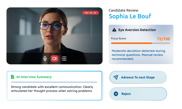 Ensure the integrity of every assessment by flagging potential cheating with AI that analyzes eye contact.